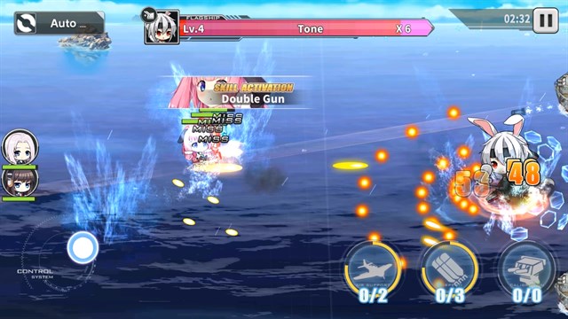 ความท้าทายของเกมนี้จะไม่ใช่แค่ต้องหลบกระสุนอย่างเดียว แต่เพราะตัวละครจะวิ่งบนนํ้า ทำให้บางครั้งจะเจอคลื่นซัด ซึ่งจะควบคุมได้ไม่ 100% ซึ่งนั่นทำให้คนเล่นจะต้องคอยระวังเรือตัวเองไม่ให้โดนยิงให้ได้มากขึ้น และเกมนี้เมื่อผ่านด่านย่อยไปแล้วเลือดตัวละครจะไม่ฟื้นแม้เลเวลอัพแล้ว ดังนั้นคนเล่นจะต้องคอยระวังเรือของตัวเองไม่ให้โดนโจมตีให้ได้มากที่สุด แต่หากพบว่าไม่ไหวก็ต้องถอยไปก่อน (แบบเดียวกันกับเกมสาวน้อยเรือรบต้นฉบับ)