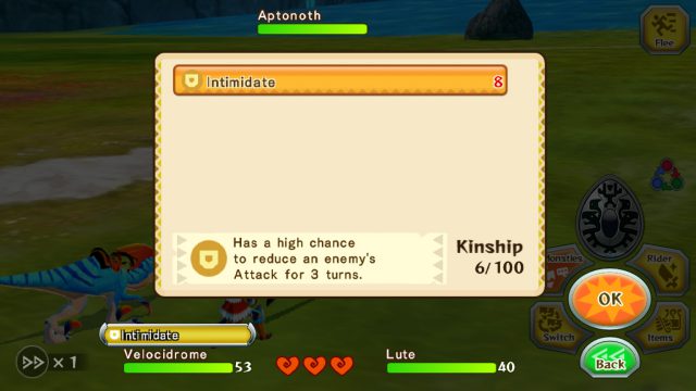 การใช้ท่า kinship attacks : Kinship คือคุณสมบัติพิเศษของ Rider เมื่อแต้ม Kinship เต็มจะสามารถใช้คำสั่ง Ride ขึ้นขี่มอนสเตอร์คู่หูได้ (และยังฟื้นฟู HP ให้คู่หูจำนวนหนึ่ง) เราสามารถใส่คำสั่งโจมตีโดยเลือกท่าเทคนิคตามต้องการได้เลย และหากเราชนะทางจะได้รับ LV Kinship เพิ่มขึ้น (สูงสุด LV 3) ส่วนการใช้ท่าคอมโบคู่ที่เป็นท่าไม้ตาย สามารถใช้ตอนขี่มอนสเตอร์คู่หูเท่านั้น ด้วยคำสั่ง Kinship จะใช้ท่าพิเศษออกมาตามชนิดของมอนสเตอร์ที่ขี่พร้อมอนิเมชั่นเท่ๆ เมื่อใช้เสร็จเราก็จะแยกกันกับมอนสเตอร์คู่หูตามเดิม