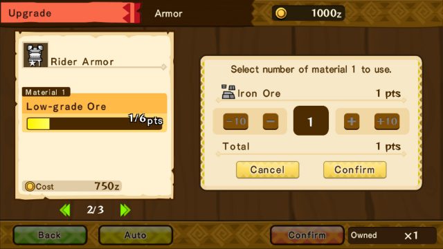 การสร้าง-อัพเกรดอาวุธ สามารถไปร้านอาวุธตามเมือง แล้วรวบรวม Material สร้างออกมาได้เลย โดยชื่ออาวุธหรืออุปกรณ์จะยังไม่ปรากฏในลิสสร้างจนกว่าจะได้รับวัตถุดิบบางส่วนจากมอนสเตอร์แล้ว และการอัพเกรดได้จากการนำแร่(ที่ขุดตามที่ต่างๆ)มาอัพเกรดเพิ่ม LV