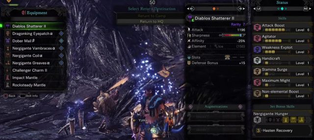 จะเห็นว่าแทบทุกบิ้วท์นั้นต้องใช้สกิล Weakness Exploit และ Critical Boost ในการเร่ง Damage ซึ่งชุดของทั้งสองสกิลนี้เป็นสกิลที่สำคัญ ควรจะเก็บเกราะ เพชร และสร้อยที่เพิ่มสกิลเหล่านี้ไว้ใช้งาน นอกจากนี้อุปกรณ์เสริม Affinity Booster และ Rocksteady Mantle ก็ยังถูกนำมาใช้บ่อยๆด้วย เนื่องจากช่วยโจมตีได้อย่างต่อเนื่องและเร่ง Damage ได้ดี