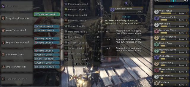 Skill ที่จำเป็น : Weakness Exploit , Critical Eye , Critical Boost ,Handicraft