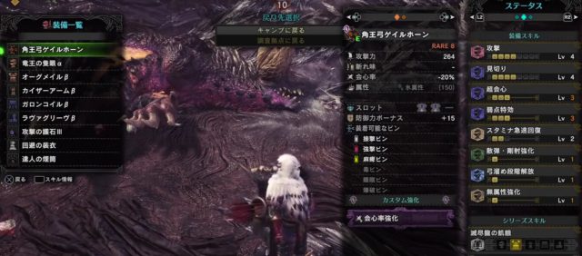 เกราะที่ใช้ : Dragonking Eyepatch A, Nergigante Mail B, Kaiser Vambraces B, Odogaron Coil B, Lavasioth Greaves B ,Attack Charm 3