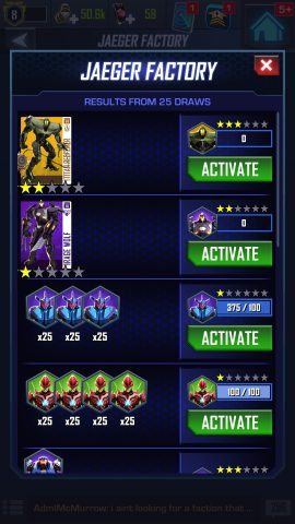 สามารถสุ่มเยเกอร์ได้ที่ Jaeger Factory โดยจะได้รับการ์ดของเยเกอร์มา เมื่อสะสมการ์ดครบจะสามารถบิ้วท์เยเกอร์ตัวนั้นขึ้นมาได้ สำหรับการพัฒนาระดับของเยเกอร์ก็เช่นกัน ต้องเก็บการ์ดของเยเกอร์ตัวนั้นๆจนครบจึงสามารถพัฒนาระดับเยเกอร์ตัวนั้นๆ