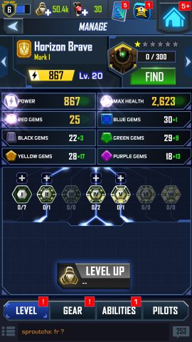 นอกจากนี้การสวม Level Up หรือการติดตั้ง Gear ก็จะช่วยเพิ่มพลังให้กับเยเกอร์ได้เช่นกัน โดย Abilities จะเป็นการติดตั้งชิฟเสริมพลังเพิ่มเติม และ Gear จะช่วยเรื่องการเพิ่มความแข็งแกร่งโดยรวม Level UP จะปล่วยปลดล็อคการติดตั้ง Gear และ Abilities