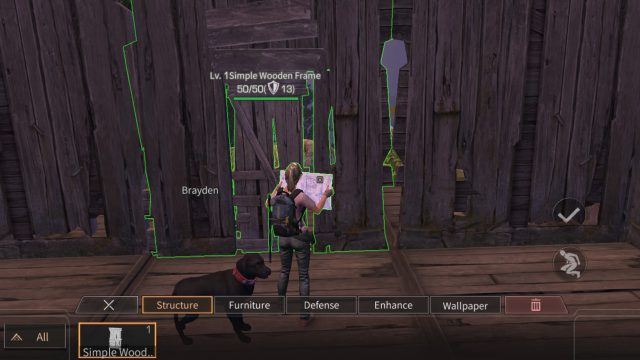 การสร้างบ้าน จำเป็นต้องรวบรวมทรัพยากรแล้วสร้างออกมาเป็นวัสดุต่างๆของบ้านก่อน เช่น พื้น , ประตู หรือกำแพง แล้วนำเก็บใส่กระเป๋า แล้วจึงกดปุ่ม Build เพื่อเข้าสู่โหมดการสร้าง แล้วเลือกวัสดุนั้นๆวางตำแหน่งที่ต้องการ โดยประตูและกำแพงจะมีพลังชีวิตอยู่ หากโดนซอมบี้โจมตีมากๆจะพังและซอมบี้บุกเข้ามาได้ แต่สามารถซ่อมได้ การโจมตีจากด้านบนจะป้องกันได้ดีกว่า