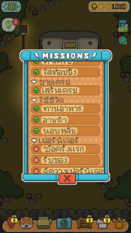 ในเกมยังมี Mission ของแต่ละด่านให้ทำอยู่ เมื่อทำครบแล้วจะสามารถไปด่านต่อไปได้ โดยคลิกไปที่ปุ่ม Get เพื่อดู Mission ด้านบนขวา เมื่อทำ Mission ในด่านแรกครบแล้ว จะสามารถไปยังด่านต่อไปได้ แต่จะต้องเสียค่าที่ 3000! เก็บให้ถึงแล้วลุยโลด เมื่อมาถึงเมืองใหม่เราจะได้พบกับวัตถุดิบใหม่ๆ เมนูใหม่ๆ เฟอร์นิเจอร์ใหม่ๆด้วย