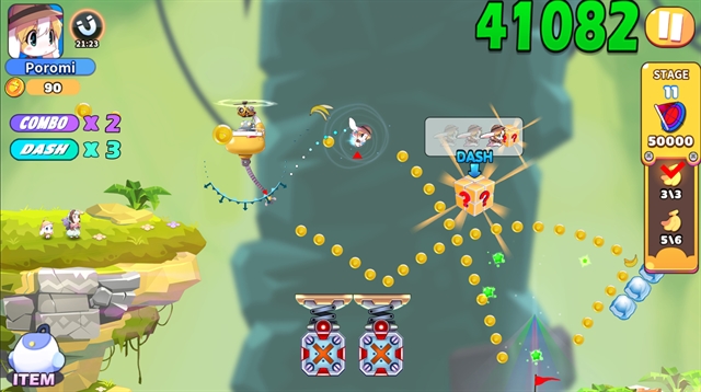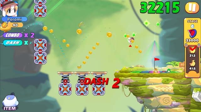 ทีนี้ จะให้หย่อนตัวเองลงไปยังพื้นที่ใกล้เส้นชัยอย่างเดียวก็จะดูน่าเบื่อไป เกมจะมีการ “บังคับ” ให้ทำคะแนน โดยคนเล่นจะต้องหาทางทำคะแนนให้ผ่านเงื่อนไขขั้นตํ่้าให้ได้ ไม่อย่างนั้นจะไม่สามารถผ่านด่านได้ ซึ่งนั่นแปลว่า คนเล่นจะต้องหาทางเก็บเหรียญ และไปโดนตัวไอเท็มที่จะเพิ่มคะแนนให้กับคนเล่นให้ได้มากที่สุดนั่นเอง