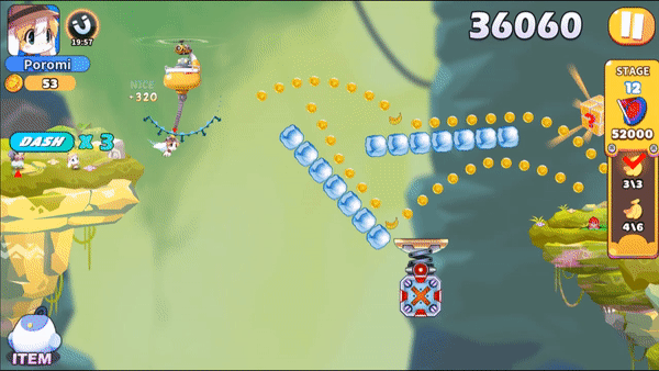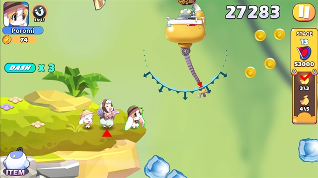 ทั้งนี้ เกมจะมีตัวละครให้คนเล่นได้เล่นทั้งหมด 3 ตัวละคร คนเล่นจะต้องใช้ทั้งสามตัวละครนี้ เก็บของให้ครบให้ได้มากที่สุดนั่นเอง และถ้าคนเล่นเผลอทำตัวละครตกร่วงไป ก็เท่ากับจะเสียตัวละครนั้นไปเลยทั้งด่าน และนั่นจะทำให้เกมเล่นยากขึ้น คนเล่นจะสามาราถใช้ไอเท็มช่วยเหลือต่างๆ ในการเล่นได้ ซึ่งไอเท็มทั้งหมดนี้คนเล่นจะสามารถซื้อได้จากการเติมเงิน หรือ สะสมเงินในเกม เอาไปแลกเพชร แล้วก็เอาเพชรไปแลกซื้อนั่นเองครับ