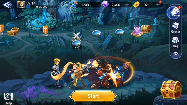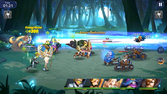 ระบบการเล่นตอนเปิดตะลุยด่านจะเป็นการเล่นแบบ RPG ที่ตัวละครจะโจมตีอัตโนมัติ และคนเล่นจะสามารถเลือกใช้สกิลในการเล่นได้ โดยจุดนี้จะมีความต่างจาก IDLE เกมอื่นอยู่ ตรงที่ว่า สกิลของตัวละครแต่ละตัวนั้นจะค่อนข้างส่งผลในการเล่น ทั้งสายโจมตีและสายซัพพอร์ต ดังนั้นในการเล่นด่านระดับสูง การกดสกิลด้วยมือจะเป็นสิ่งจำเป็น เสียดายที่เกมนี้ตัวละครจะมีสกิลให้กดแค่ตัวละ 1 สกิลเท่านั้น ไม่อย่างนั้นเกมจะมีความหลากหลายกว่านี้