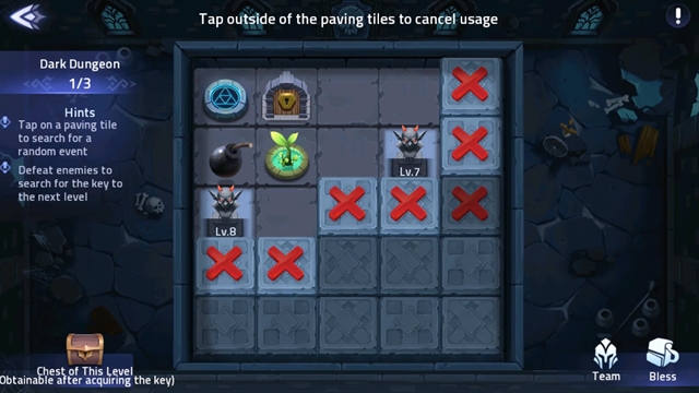 โดยตัวละครในทีมคนเล่น เมื่อผ่านด่านไหนได้แล้ว ก็จะวนเวียนอยู่ในด่านนั้นแบบอัตโนมัติเพื่อเก็บเกี่ยวทรัพยากรสำหรับการเอามาอัพเกรดตัวละคร ดังนั้นแปลว่า ถ้าคนเล่นสามารถฝ่าไปด่านสูงได้แค่ไหน อัตราการเก็บวัตถุดิบของตัวละครในเกมก็จะมากขึ้นด้วย เกมนี้ไม่มีระบบดาวตอนจบด่าน คนเล่นสามารถทำยังไงก็ได้ให้ตัวละครผ่านด่านนั้นๆ ให้ได้ก็พอ