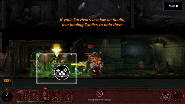 การใช้สกิลของตัวละครจะทำการใช้อัตโนมัติ แต่เราสามารถใช้สกิลสนับสนุนให้กับปาร์ตี้ได้ เช่น ยิงด้วยสไนเปอร์ หรือฟื้นฟูพลังชีวิตให้ได้ โดยสกิลสนับสนุนจะอยู่ในช่อง Tactic ตอนจัดปาร์ตี้ก่อนตะลุยฝูงซอมบี้ โดยเมื่อใช้แล้วจะมีระยะเวลา Cooldown ต้องรอจนกว่าจะครบเวลาจึงจะใช้ได้อีก การใช้จึงต้องระมัดระวัง