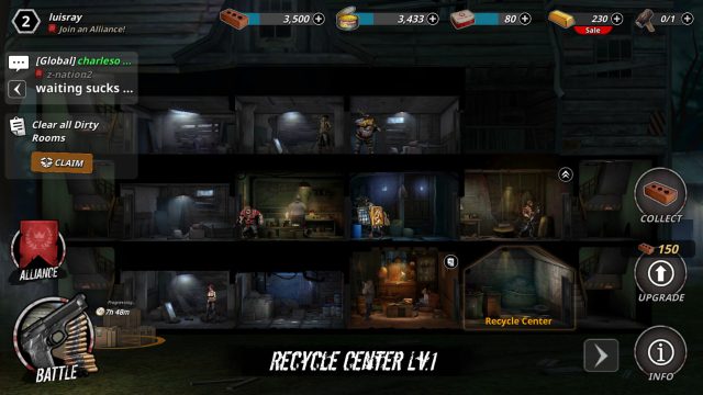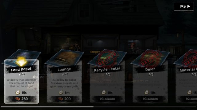 เมื่อเราหนีรอดออกมาได้ การพัฒนา Shelter เราต้องทำการเคลียร์ห้องก่อน จึงค่อยสร้างสิ่งก่อสร้างลงไปเพื่อสร้างทรัพยากรและพัฒนา Shelter เช่น Recycle Center เพิ่มอิฐ ,Diner เพิ่มอาหาร ,Lounge เพิ่ม LV ของตัวละคร Operations เป็นที่ฝึกฝนสกิล Tactic เป็นต้น