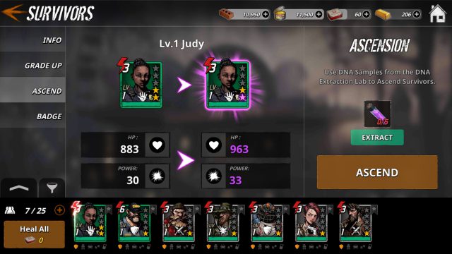 การอัพเกรดตัวละครสามารถทำได้ตั้งแต่ เพิ่ม LV ด้วย Lounge ,Grade up เพื่ออัพเกรดเพิ่มดาว ,Ascend ปลุกพลัง ซึ่งขั้นตอนในการอัพเกรดนั้นจะค่อนข้างมีหลายขั้นตอน ในเบื้องต้นแนะนำให้อัพเกรด LV ด้วย Lounge ไปก่อน (ใช้เวลาอัพเกรดตัวละ 8 ชม.)