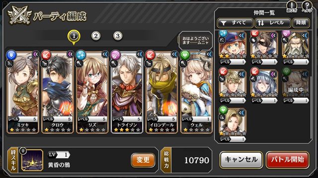 คนเล่นจะสามารถจัดทีมได้ทั้งหมด 6 ตัวละคร และในเกมจะจัดลำดับแถวตัวละครให้อัตโนมัติว่าใครอยู่แนวหน้าหรือแนวหลัง ในเกมจะมีการแบ่งธาตุออก แต่ทั้งนี้ระบบธาตุในเกมนี้จะแบ่งตามสายอาชีพด้วย จึงทำให้แต่ละธาตุนั้นจะล็อคไปเลยว่า ธาตุไหนเป็นสายอาชีพอะไร จึงค่อนข้างง่ายในการเลือกจัดทีมตัวละคร