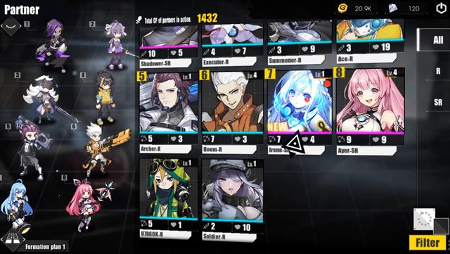 คนเล่นจะสามารถใส่ตัวละครในทีมได้ถึง 8 ตัวละคร และในเกมจะมีการสุ่มเอาตัวละครในทีมมาให้คนเล่นได้เลือกหยิบเอาไปใส่ในกระดาน ตัวละครแต่ละตัวนั้นก็จะมีความสามารถแตกต่างกัน คนเล่นจะสามารถอัพเกรดพวกเขาเพื่อเพิ่มความสามารถได้ดีไม่แพ้ตัวละครเกรดสูงๆ แต่ตัวละครเกรดสูงๆ เกมนี้จะแตกต่างจากตัวละครเกรดปกติ ตรงที่ว่าตัวละครเกรดสูงๆ จะมีการแสดงผลแบบอนิเมชั่น Live 2D ขยับนิดหน่อยได้ด้วย