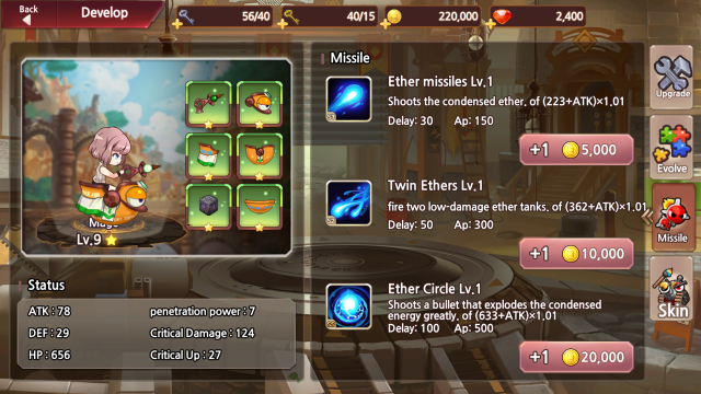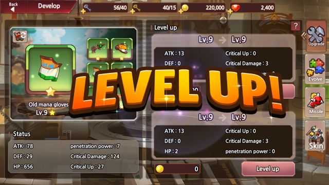 เราสามารถอัพเกรดและพัฒนา Mobile ของ Gunbound ได้ โดยไปที่คำสั่ง Mobile > Develop ซึ่งสามารถนำ Gold มาอัพเกรด LV ของรถ และอัพเกรด LV ของชิ้นส่วนรถเพิ่มความแข็งแกร่งได้ นอกจากนี้หากเราสะสมชิ้นส่วนของรถไว้จำนวนมากพอก็จามารถ Evolve เพื่อเพิ่มดาวได้ ที่สำคัญต้องไม่ลืมอัพ LV ของ Missile เพิ่มความแรงของท่ายิง เพื่อให้ชนะง่ายขึ้น