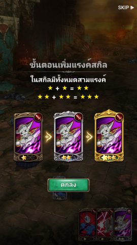นอกจากการโจมตีด้วย Skill Card ที่เลือกแล้ว ยังมีลูกเล่นต่างๆด้วยก็คือการผสม Skill Card แบบเดียวกัน เพื่อเพิ่มระดับของ Skill Card ซึ่งจะทำให้โจมตีแรงขึ้นและมีเอฟเฟ็คมากขึ้น หรือสามารถเลื่อนตำแหน่งการ์ดเพื่อทำการผสมการ์ดกันได้สูงสุดถึง 3 ดาว นอกจากการผสมการ์ดเพิ่มระดับแล้ว ยังได้รับเกจไม้ตายสะสมได้ด้วย เมื่อสะสมครบจะสามารถปลดปลอยท่าไม้ตายที่เป็นคัทชีนอนิเมชั่น สวยงามและรุนแรงออกมา