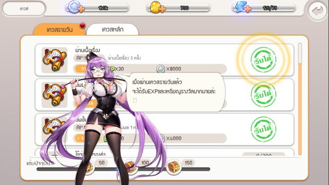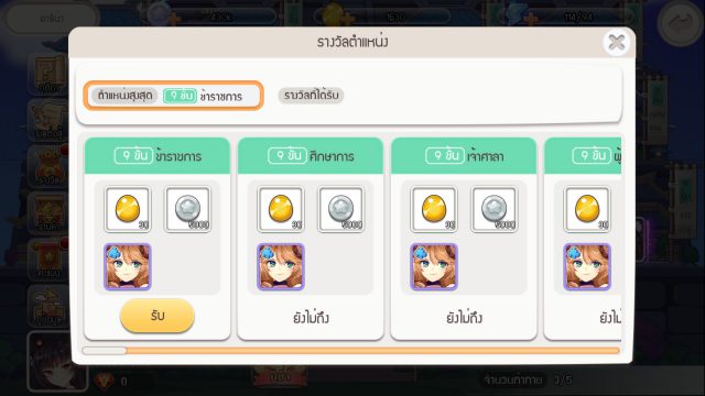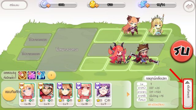 – หากพลังงานเหลือให้เล่นที่ปกครอง ซึ่งจะได้รับ ทั้งเงิน หินอัพเกรด และ EXP