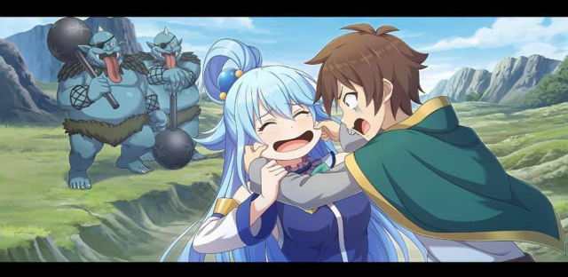 เอาจริงก็มีมาให้เห็นบ้างเป็นระยะๆ ในขณะที่เนื้อเรื่องหลักอาจจะเครียด แต่ก็จะมีมุขตลกเฮฮาแทรกมาบ้าง แต่บางเกมนั้นจะทำเหนือกว่านั้นคือ เอาฮามันทั้งเนื้อเรื่องหลักและเนื้อเรื่องรองไปเลย ซึ่งเกมที่ว่าคนเขียนดันรู้จักเกมเดียว คือ KONOSUBA (เซิร์ฟญี่ปุ่น) ซึ่งปกติในอนิเมะก็ฮาอยู่แล้ว ในเกมยิ่งฮาเข้าไปใหญ่ ตบมุขกันได้ทุกตอนเลยทีเดียว