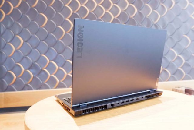 รูปลักษณ์ภายนอกดำด้านสวยเฉียบมีระดับพร้อมโลโก้ Legion ด้านซ้ายบน และระบบ Legion Coldfront 2.0 ด้านล่างจะมีรูระบายอากาศขนาดใหญ่อยู่ไว้ระบายความร้อนและมีรูระบายความร้อนด้านข้างอยู่ด้วยซึ่งสามารถปรับโหมดได้เอง ระหว่างโหมดการรักษาอุณหภูมิ Quiet, Balance และ Performance นอกจากนี้ยังสามารถเร่งความแรงได้ด้วยการเปิด Dual Burn เพื่อดัน CPU และ GPU ให้มีประสิทธิภาพสูงสุดไปพร้อมๆกัน ช่องสายชาร์จอยู่ด้านหลังกับพอร์ตอื่นๆ ทำให้ไม่มีสายมาเกะกะด้านซ้ายและขวาเหมือนโน้ตบุ๊กรุ่นอื่นๆ ทำให้ง่ายในการขยับมือและเมาส์ ส่วน USB และแจ็คหูฟังยังคงอยู่ด้านข้างซึ่งไม่เกะกะเท่าไหร่