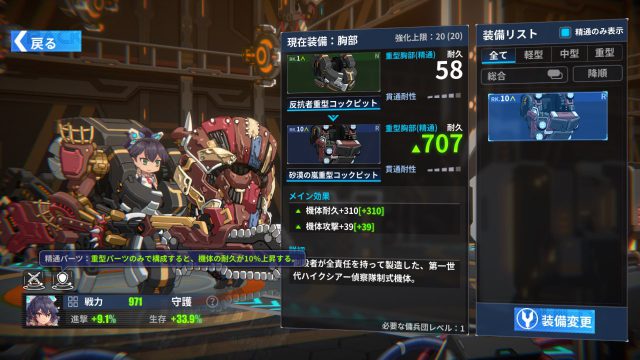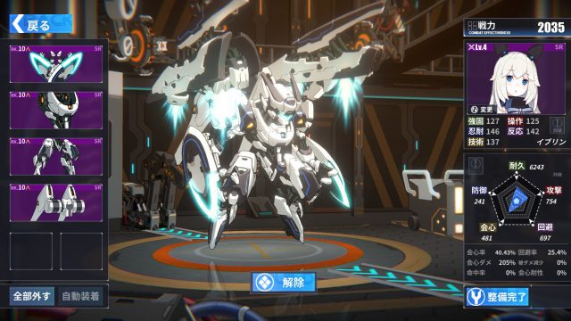 จุดเด่นของเกมนี้คืออุปกรณ์ อุปกรณ์แต่ละชิ้นจะมีรูปร่างหน้าตาต่างกันและคนเล่นจะเปลี่ยนรูปลักษณ์ของหุ่นไปตามอุปกรณ์ที่สวมใส่ได้ และเมื่อประกอบครบทุกชิ้นก็จะได้รับบัพเพิ่ม ในกรณีที่เป็นอุปกรณ์ระดับสูง (ม่วง) จะเปลี่ยนร่างเป็นหุ่นยนต์เต็มตัว ที่พอใช้สกิลแล้วจะมีฉากคัทซันอนิเมะสั้นมาให้ดูอีกด้วย