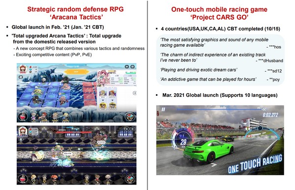 แต่ไม่ต้องห่วงแม้เราจะได้เจอกับ World of Zenonia ในปี 2022 แต่ในปีหน้านี้ทาง Gamevil ก็ยังเตรียมผลงานเอาไว้ให้เหล่าเกมเมอร์ได้มันส์กันในปี 2021 ถึง 4 เกมส์นระหว่างที่รอถึง 4 เกมส์เลยทีเดียวได้แก่ Arcana Tactics, Project CARS GO, Project C idle RPG และ Walking Dead Project โดยทั้ง 4 เกมส์นี้จะมีทั้งที่ Gamevil ให้บริการเอง และ บางเกมส์ที่จะให้ผู้ให้บริการอื่นมาเป็นผู้ดูแลการเปิดให้บริการ โดยมีข่าวลือว่า Arcana Tactics ที่ได้เปิดให้บริการในเกาหลีใต้แล้วกำลังเตรียมที่จะเปิดให้บริการในเซิร์ฟเวอร์ Global เร็วๆ นี้