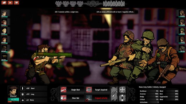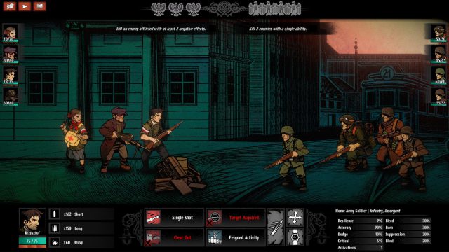 หากใครที่กำลังมองหาเกม RPG Turn-base ที่มีสไตล์การเล่นแบบ Darkest Dungeon แล้วล่ะก็เราขอแนะนำ WARSAW เป็นเกมที่มากกว่า RPG Turn-base เราขอพาทุกท่านย้อนกลับไปกว่า 70 ปีที่แล้วในสมัยสงครามโลกครั้งที่ 2 ที่แห่งนี้ กรุงวอซอร์ (WARSAW) เมืองหลวงของประเทศโปแลนด์ที่กำลังถูกกองทัพนาซีเข้าโจมตี จะมีเพียงกลุ่มคนเล็กๆเท่านั้นที่จับอาวุธลุกขึ้นสู้ท่ามกลางสงครามอันรุนแรงโดยไร้ความช่วยเหลือ คุณจะได้เป็นผู้บัญชากองกองกำลังปลดแอกที่เป็นหนึ่งในหน้าประวัติศาสตร์ Warsaw Uprising ที่เรานำกองกำลังปลดแอคเข้ายันกับกองทัพนาซี ให้ได้เป็นเวลา 63 วัน ก่อนที่กองทัพพันธมิตรจะมาช่วยเหลือ ในการต่อสู้ครั้งไร้การสนับสนุนและช่วยเหลือใดๆจากภายนอกอย่างสิ้นเชิง การตัดสินใจอันเฉียบแหลมเท่านั้นที่จะทำให้รอดได้!