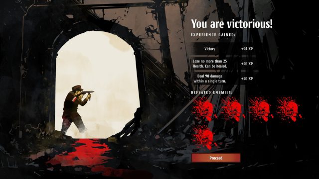 ในฉากต่อสู้นั้นจะคล้ยกับ Darkest Dungeon เลย แต่ตัวละครจะยืนกัน 2 แถว สำหรับสกิลการโจมตีจะระบุตำแหน่งที่ใช้สกิลได้และตำแหน่งเป้าหมาย (ต้องยืนให้ถูกตำแหน่งถึงใช้สกิลนั้นๆได้) โดยระบบการต่อสู้เกมนี้จะเป็นระบบ Action นับรวม ก็คือ หากในทีมของเรามีตัวละคร 4 ตัว และศัตรู 3 ตัว เราได้โจมตีทั้งหมด 4 ครั้ง และศัตรู 3 ครั้งสลับกัน โดยแต่ละ Action สามารถเลือกตัวใช้ซ้ำกันได้ (เช่นเลือกตัวละครใดตัวนึงโจมตีติดกัน 3 รอบ) โดยตัวละครที่ Action ออกไปจะลดค่า Stamina (สูงสุด 3) และเมื่อจบ Turn จะได้ฟื้นฟูค่า Stamina คนละ 1