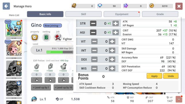 ในการอัพเกรดเกมนี้ก็ไม่ได้แตกต่างจากเกมอื่น ความน่าสนใจก็คือมีระบบอัพเกรดสเตตัสที่คนเล่นจะสามารถอัพค่าพลังของตัวละครไปตามที่คนเล่นต้องการได้ นอกจากนี้ยังสามารถหาเศษตัวละครเพื่ออัพระดับเกรดให้เป็นระดับสูงได้อีกด้วย ทุกตัวละครในเกมนี้จึงสามารถดันให้เก่งๆ ได้สบาย