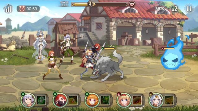 ในการเล่นนั้นตัวละครจะทำการโจมตีอัตโนมัติและให้คนเล่นกดใช้สกิลได้เมื่อเกจเต็ม โดยแต่ละตัวละครนั้นจะมีสกิล 1 สกิลที่ล็อคตายตัวตามสายอาชีพ ทั้งแท้งก์, โจมตีใกล้, โจมตีไกล หรือฮีล โดย 5 ตัวละครนั้นเกมจะมีครบทุกสายมาให้เล่น