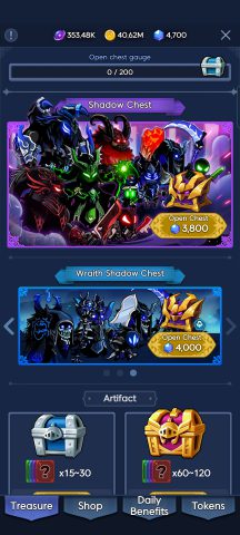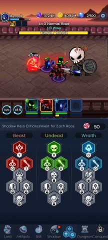 – Races : ระบบเผ่าพันธุ์ของ Shadow เมื่ออัพเกรด Races จะเพิ่มพลังให้กับ Shadow ทั้งเผ่าเลย โดยใช้ Tokens ที่ได้จากดันเจี้ยนในการอัพเกรด