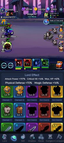 Raid & Dungeon สำหรับดันเจี้ยนเกมนี้จะเป็นการเก็บ Artifacts และ Tokens ไว้นำไปอัพเกรดได้ สำหรับ Raid จะเป็นการปะทะกับบอสสุดโหดหากผ่านได้จะได้รับไอเทมสำหรับ Shadow หรืออัพเกรดพลังให้กับ Lord ได้