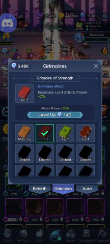 – Lord : ใช้ Gold ที่ได้จากการฆ่ามอนสเตอร์ทั่วไปในการอัพเกรด 3 อย่าง Power/
