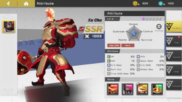 ในส่วนของการอัพเกรดตัวละครนั้นคนเล่นจะต้องหาชิ้นส่วนสกิลมาก่อนถึงจะสามารถปลดล็อคได้ และคนเล่นจะสามารถเปลี่ยนสกิลให้กับผู้คุมวิญญาณของตัวเองได้ด้วยว่าจะใช้สกิลไหน เกมจึงเป็นลักษณะสะสมได้หลายอย่าง ทั้งตัวละคร สกิล ทำให้เกมมีความหลากหลายในการเล่นมากขึ้น