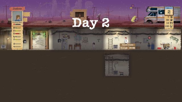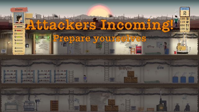 นอกจากนี้ในบางครั้งอาจจะเจอผู้บุกรุกที่พยายามบุกเข้ามายึด Shelter ซึ่งจำเป็นจะต้องปกป้อง Shelter ให้ได้ โดยเมื่อเข้าสู่ช่วงปะทะกัน ให้เลือกคนที่สู้และอาวุธ โดยการสู้จะสู้กันในรูปแบบ RPG-Turn base เมื่อสู้เสร็จอย่าลืมซ่อมประตู และกำจัดศพของผู้บุกรก (จะนำไปเผาหรือฝังก็ได้) นอกจากนี้ยังมีเนื้อเรื่องของผู้มาเยือนให้เราตัดสินใจ