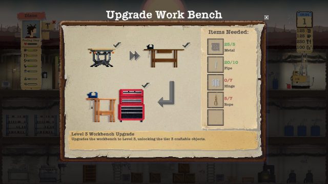 ตัวเกมจะคล้ายกับ This War of Mine คือการออกหาอาหาร ทรัพยากรมาคราฟอุปกรณ์ต่างๆเพื่อความอยู่รอด เช่น ห้องน้ำ เตียงนอน ห้องน้ำ ห้องอาบน้ำ เตาทำอาหาร รวมถึงอาวุธต่างๆ ด้วยซึ่งสามารถคราฟได้จากโต๊ะทำงาน (Work Bench) นอกจากนี้ต้องคอยดูแลอุปกรณ์ของ Shelter ด้วย เช่น เครื่องกรองอากาศ และเครื่องกรองน้ำ ซึ่งจะต้องมีการบำรุงบ่อยๆ ไม่อย่างนั้น อากาศและน้ำใน Shelter จะเป็นพิษ