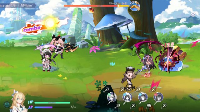 ใน 1 ตัวละครจะมีสกิลให้เลือกสู้สองสกิล ซึ่งหากมีการกดเลือกถูกก็จะทำคอมโบได้เยอะ จะมีการเก็บเพจซึ่งหากปุ่มสกิลนั้นๆ มีการส่องแสงก็จะเป็นการโจมตีแบบไม้ตาย กรณีตัวละครระดับสูงก็จะมีท่าโจมตีที่มากกว่าตัวละครระดับล่างๆ ตรงนี้หากขี้เกียจก็กดออโต้ได้เช่นกัน