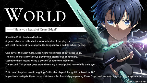 หลังจากที่ Bandai Namco Entertainment ได้เปิดตัวผลงานใหม่ล่าสุด Sword Art Online: Variant Showdown ผลงาน ฉลองครบรอบ 10 ปี ที่จัดเต็มเพื่อให้เหล่าสาวก SAO ได้รำลึกถึงบรรยากาศที่คุ้นเคยกันอีกครั้งกับการไดรฟ์เข้าสู่เกมส์ใหม่ Cross Edge ที่เกิดเรื่องผิดปรกติที่มีการออกล่าผู้เล่นอีกครั้งโดยผู้เล่นที่สวมฮูดคล้ายกับ Laughing Coffin กิลด์สุดโหดจาก SAO ซึ่งผลกระทบที่เกิดขึ้นแม้จะไม่ได้รุนแรงเท่ากับใน SAO แต่ก็ทำให้บรรดาเหยื่อทั้งหลายสูญเสียความทรงจำบางส่วนไป เราจำเป็นต้องหาความจริงว่าเกิดอะไรขึ้น