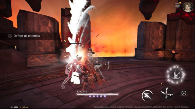 ระบบการต่อสู้แบบนี้ถูกออกแบบมาให้เหมาะสมกับมือถือมาก คือไม่ต้องกังวลว่าพอเป็นเกมแอ็คชั่นเต็มตัวแล้วจะเล่นยากเพราะระบบล็อคเป้าเกมจะอำนวยความสะดวกให้ กดสลับเปลี่ยนหรือออกได้ตลอดเวลา ขอแค่อย่าโดนศัตรูรุมจนติดฉากแล้วหนีไม่ได้ก็พอ