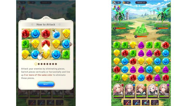 และเฉกเช่นเดียวกันเกมแนวเรียงเพชรที่จะมีพวกไออเท็มช่วยหากเราติดจนไปไหนไม่ได้ แต่เกมนี้นำเสนอระบบการเล่นแบบกาชาที่มีการแบ่งเกรดตัวละคร ตัวละครแต่ละคนก็จะมีสกิลที่แตกต่างกันซึ่งยิ่งพัฒนาตัวละครก็จะยิ่งได้สกิลใหม่มาให้เล่นมากขึ้นอีกด้วย (เกมนี้พัฒนาตัวละครได้แต่จะเพิ่มระดับดาวไม่ได้)