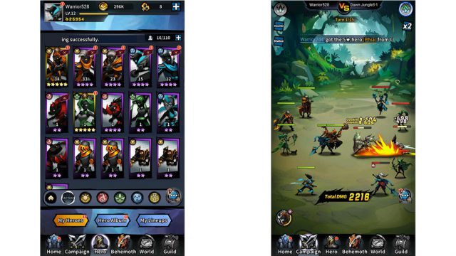 แน่นอนว่าเกมจะยังคงมีการต่อสู้แบบออโต้และตัวละครใช้สกิลเอง แต่จุดเด่นคืออนิเมชั่้นการต่อสู้จะทำออกมาดูดีกว่าเกม IDLE เกมอื่นที่จะดูธรรมดาไปหน่อย และคนเล่นจะสามารถจัดแนวการยืนของทีมได้ค่อนข้างเยอะ ซึ่งทำให้คนเล่นพอหาความได้เปรียบและแก้ทางได้