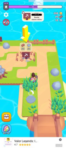 การอัพเกรดเมืองหรืออัพเกรดเครื่องมือ ทำได้โดยการใช้เงินไปอัพเกรดที่ฐานหลัก ส่วนเงินก็ได้จากการขายวัตถุดิบให้ตลาด อ้อทรัพยากรนอกจากไม้และหิน ยังมีพวกเสบียงอาหารด้วย เช่น แอปเปิ้ล ฟักทอง ได้จากการทำเควสไปเรื่อยๆจะสามารถปลดฟาร์มเหล่านี้ได้เอง