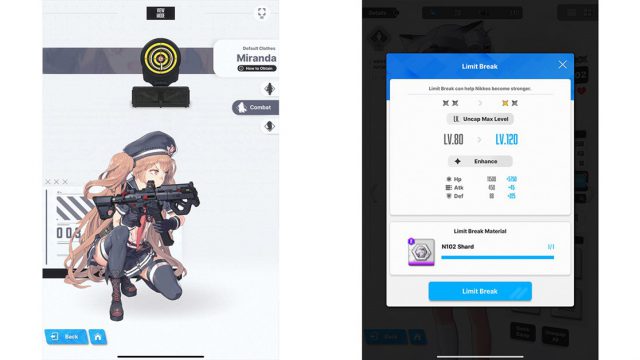 ตัวละครเกมนี้จะเพิ่มความแข็งแกร่งได้โดยการสวมใส่อุปกรณ์และอัพเลเวล นอกจากนี้หากเอาเศษตัวละครซ้ำก็จะปลดลิมิตเพื่อเพิ่มระดับ level ได้ แต่เกมนี้ตัวละครเกรดดีสุดอย่างสีทองจะสามารถอัพเลเวลได้สุดถึง 200 ในขณะที่ตัวละครเกรดสีม่วงจะอัพถึงแค่ 160 เท่านั้น ทำให้มีความแตกต่างกันของตัวละครเกรดสูงกับเกรดธรรมดาค่อนข้างมากทีเดียว