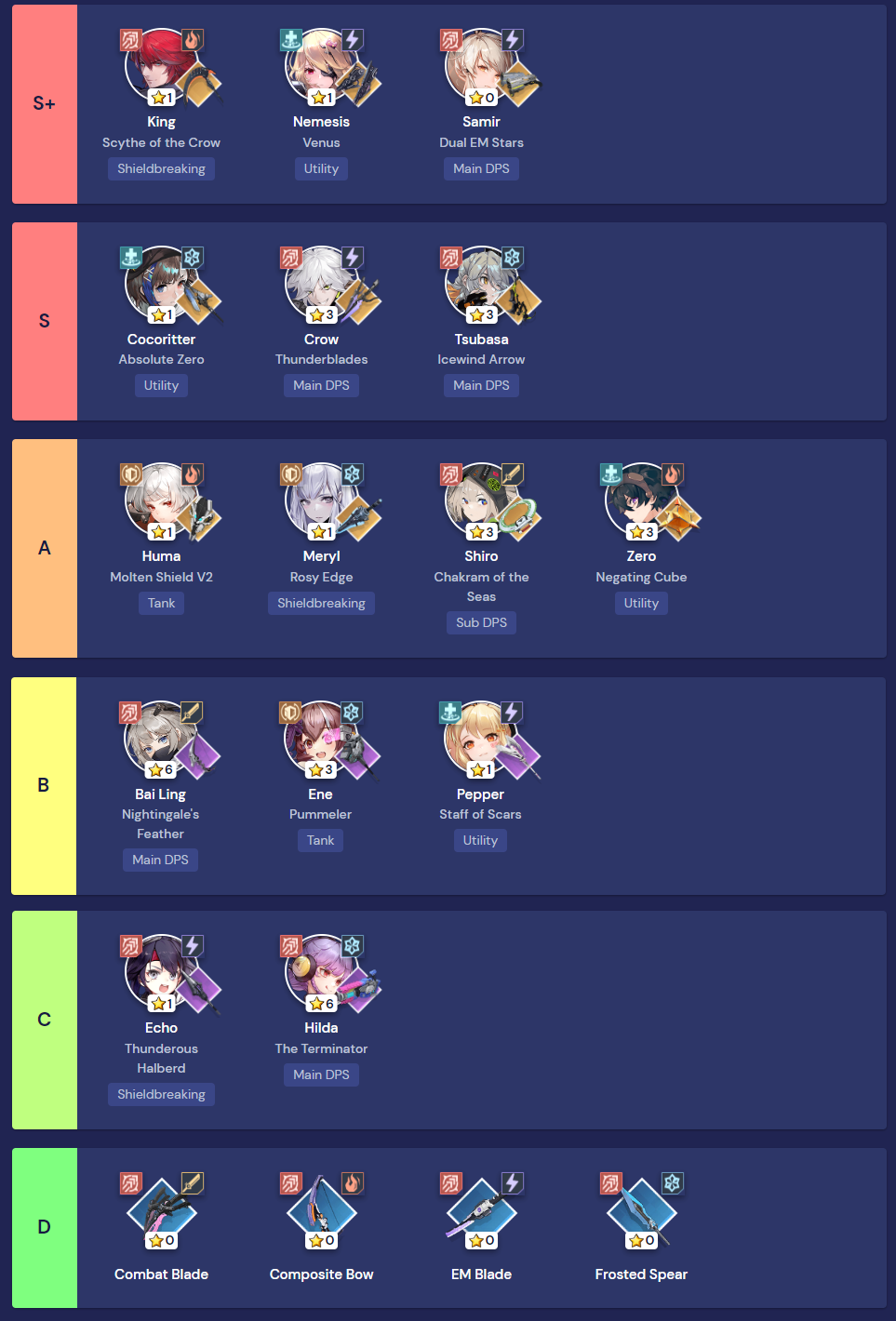 จุดเด่นอีกอย่างของเกมนี้ก็คือคนเล่นจะมีเพดานการันตีหน้าตู้อยู่ที่ 80 โรล ถึงแม้ว่ากาชาเกมนี้ถึงแม้ว่าจะมีความเค็มบ้างแต่ก็ไม่ได้ทรมานคนเล่นขนาดนั้น และสำหรับคนแรกที่สงสัยว่าควรจะต้องเอาอาวุธอะไรมาเล่นถึงจะดีที่สุดนั้น ทางเราขอนำเสนอที่ Tier List ตามภาพนี้มาเป็นตัวเลือกให้กับคนเล่น แต่อยากจะแนะนำว่า แม้ Tier List แนะนำที่ว่าจะมีผลในการเล่นพวกคอนเท้นต์สูงๆ แต่หากคนเล่นต้องการความสนุกในการเล่น ก็สามารถเลือกเล่นไอเทมแบบไหนก็ได้ ตามใจคนเล่นเลย