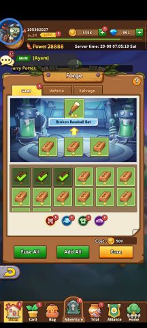 Equipment Upgrade : ใช้คำสั่ง Forge เพื่ออัพเกรดอุปกรณ์ โดยนำอุปกรณ์ระดับเดียวกัน 3 ชิ้น อัพเกรดเป็นอุปกรณ์ระดับสูงขึ้นได้