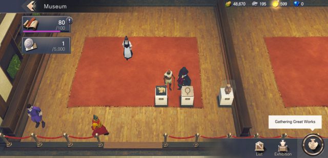 ภายในเกมส์จะมีระบบ มินิเกม หลากหลายรูปแบบทั้ง Match 3 เพื่อสร้างยอดผลงานไปจัดแสดงในพิพิธภัณฑ์ การสำรวจพื้นที่รกร้าง ที่อาจจะเจอศัตรูขัดขวางทั้งการต่อสู้ ส่งนักวิทยาศาสตร์ออกไปวิจัยสิ่งแปลกใหม่ หรือ การส่งยอดศิลปิน ออกไปสร้างสรรค์ผลงาน หากเราไม่มีตัวละครในสายที่ตรงกับอุปสรรคเราจะไม่สามารถเลือกเส้นทางไปสายนั้นได้ การจัดแสดงสิ่งต่างๆ ที่เราได้รับมาใน พิพิธภัณฑ์ ที่ช่วยให้เรารับทรัพยากรที่จำเป็นได้โดยอัตโนมัติ