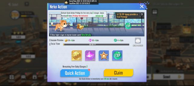 และอีกหนึ่งระบบอำนวยความสะดวกสบายของเกมนี้นั่นก็คือระบบ AFK ที่ตัวละครจะทำการต่อสู้อัตโนมัติ และฟาร์มทรัพยากรได้แม้จะกดปิดเกมได้อีกด้วย ยิ่งคนเล่นผ่านด่านไปในระดับสูง ก็จะยิ่งได้รับทรัพยากรจากการฟาร์มออฟไลน์ที่มากขึ้น แปลว่ายิ่งเล่นก็จะยิ่งเก่งไปเรื่อยๆ