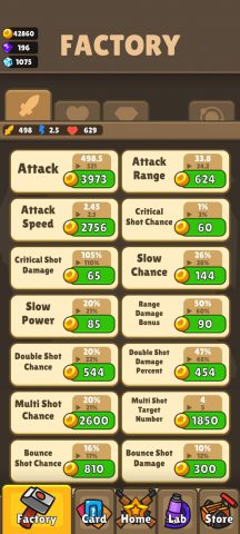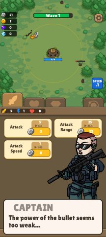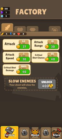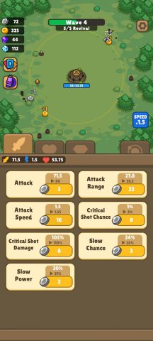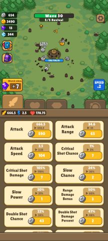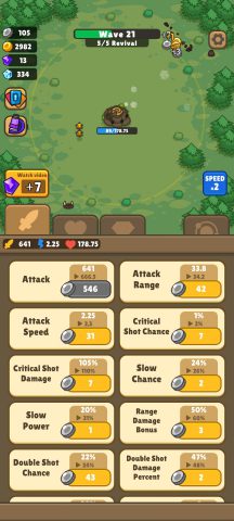 ช่วงแรกให้เน้นอัพเกรด พลังโจมตี ความเร็วในการโจมตีและระยะก่อน พอได้ Gold มาให้อัพ 3 อย่างแรกที่บอกไว้ให้มากที่สุด พอเริ่มสามารถไปด่านที่ 20 ได้ค่อยเริ่มอัพป้องกันและอุปกรณ์เสริม รวมถึงทรัพยากรเพื่อให้ได้ Gold มากขึ้นในแต่ละด่าน