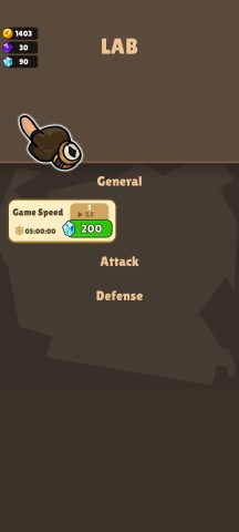 ใช้เพชรอัพเกรดความสามารถของป้อมต่างๆ ด้าน Game Speed ,Attack หรือ Defense โดยจะต้องใช้เวลาวิจัย