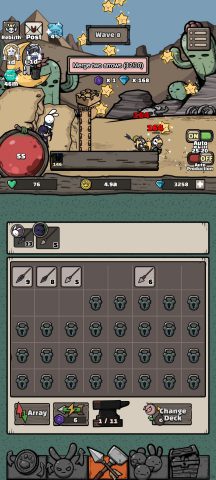 สำหรับเกมนี้เราจะเล่นเหมือนเกมแนว Idle-Tower Defense ทั่วไปคือ มอนสเตอร์จะจู่โจมเข้ามาเป็น Wave เก็บสะสมเงินคอยอัพเกรด ตัวละครและป้อมให้แข็งแกร่ง แต่สิ่งที่ต่างจากเกมอื่นคือ มีการเมิร์ชไอเทมเพื่อเพิ่มความแข็งแกร่งอีกทางหนึ่ง